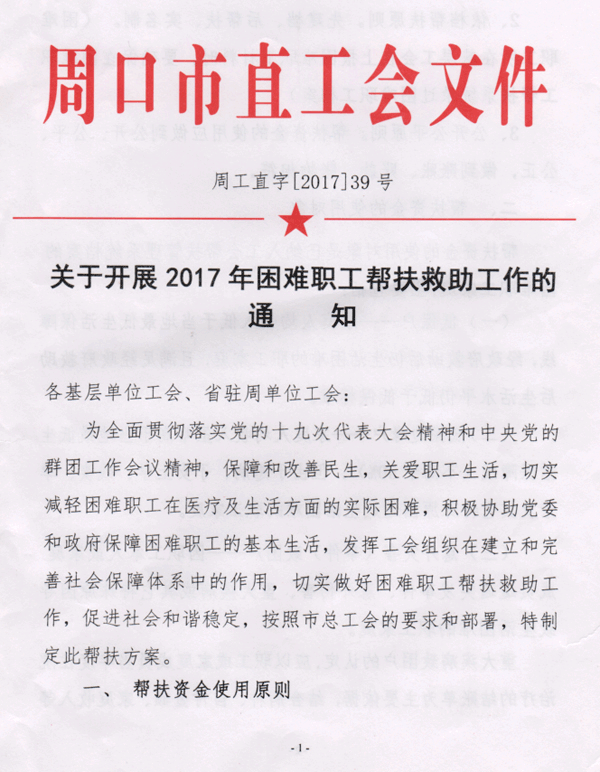 市直工會 關(guān)于開展2017年困難職工幫扶救助工作的通知