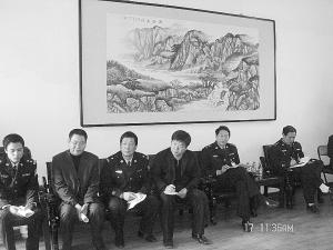 市長助理、市公安局局長姚天民(中)在保安公司指導(dǎo)工作。左為市公安局副局長周琦,右為保安公司總經(jīng)理韓國華。