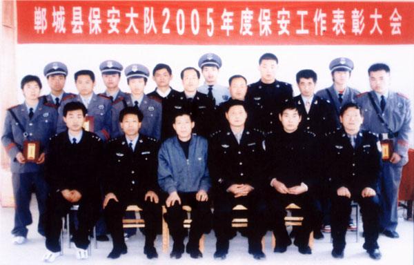 2006年度市公安局保安公司領(lǐng)導(dǎo)和鄲城縣公安局領(lǐng)導(dǎo)與受表彰的保安隊員合影留念…