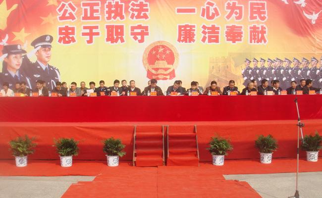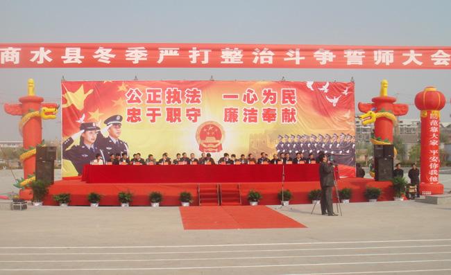 會上,商水縣縣委書記劉政首先作了嚴打整治動員講話。縣委常委、政法委書記楊繼魯對全縣冬季嚴打整治工作做出了總體部署,副縣長、公安局長羅海龍、檢察院檢察長閆永、法院院長楊磊及部分鄉(xiāng)鎮(zhèn)負責(zé)人分別就如何采取措施確保嚴打整治活動取得明顯效果作了表態(tài)發(fā)言,舉行了新警車、巡邏摩托車授車儀式,巡特警方隊表演了警體拳和盾牌操。