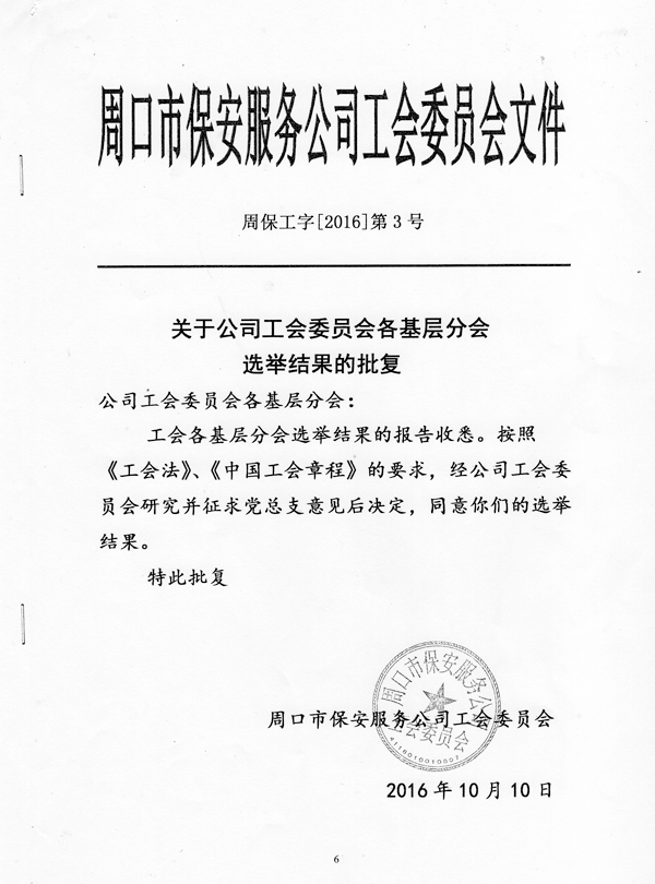 關(guān)于公司工會(huì)委員會(huì)各基層分會(huì)選舉結(jié)果的批復(fù)