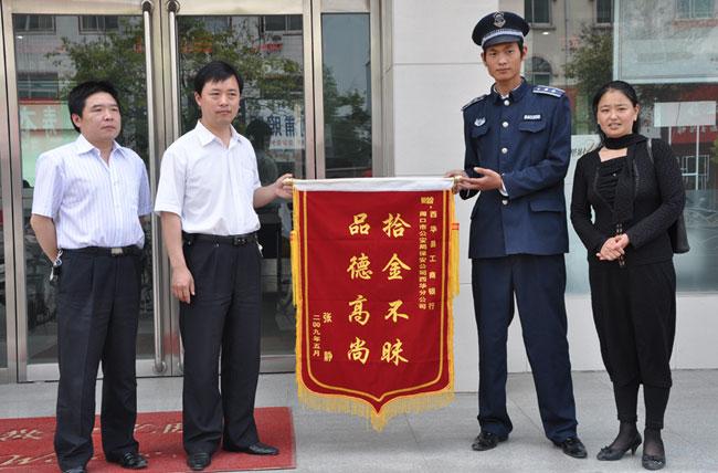 失主向保安公司和工商銀行送錦旗致謝