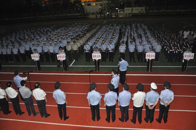 7月7日晚,市公安局在綜合訓(xùn)練場(chǎng)隆重舉行夏季社會(huì)治安巡邏防控啟動(dòng)儀式,保安公司和市局機(jī)關(guān)16個(gè)單位參加了啟動(dòng)儀式,市公安局黨委副書(shū)記、副局長(zhǎng)范志剛主持啟動(dòng)儀式,市公安局黨委委員、副局長(zhǎng)劉祥東作了動(dòng)員講話,晚8時(shí)20分,市長(zhǎng)助理、市公安局局長(zhǎng)姚天民發(fā)布了周口公安機(jī)關(guān)夏季社會(huì)治安巡邏防控啟動(dòng)命令。