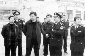 市長助理、市公安局局長姚天民(中)在保安公司指導(dǎo)工作。左為市公安局副局長周琦,右為保安公司總經(jīng)理韓國華。