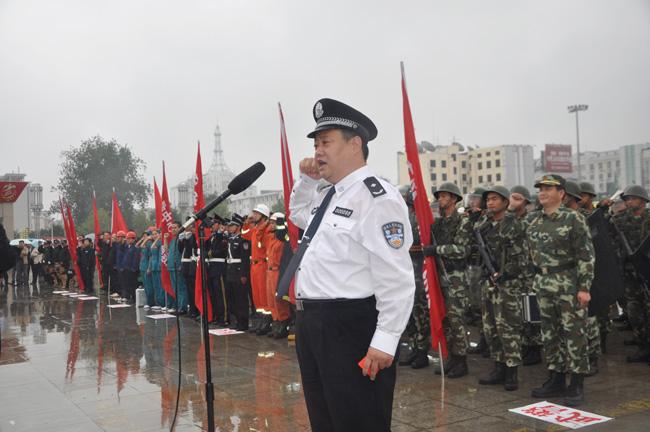 4時20分,市長助理、市反恐怖工作協(xié)調(diào)小組副組長、公安局長姚天民同志帶領反恐應急“第一梯隊”全體成員進行國慶安保宣誓;4時30分,市政法委書記、市反恐怖工作協(xié)調(diào)小組組長朱家臣同志,副市長、市反恐怖工作協(xié)調(diào)小組副組長劉國連同志,市長助理、市反恐怖工作協(xié)調(diào)小組副組長、公安局長姚天民同志檢閱反恐應急“第一梯隊”。當有關領導在檢閱保安公司時,親切地向蔣子華經(jīng)理詢問保安隊員裝備情況及在本次任務的職責,蔣子華同志認真地做了回答,得到了檢閱領導的充分肯定和認可。