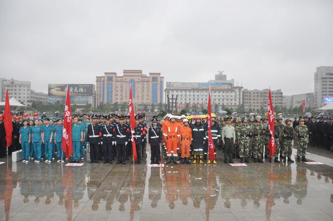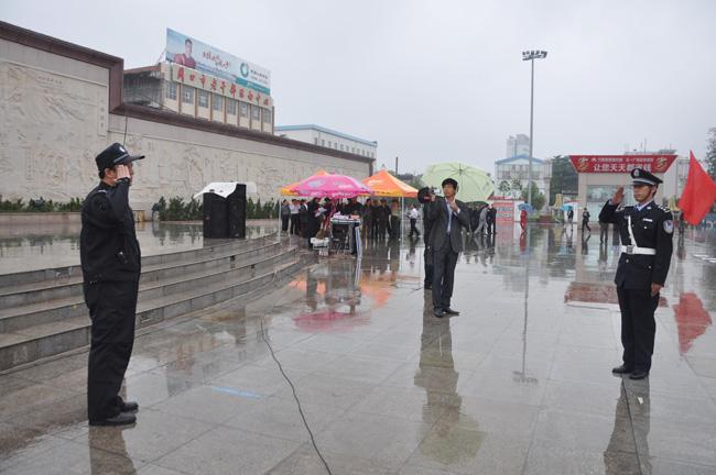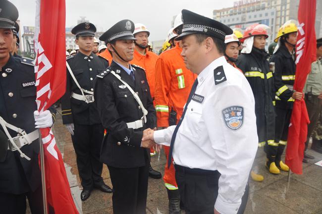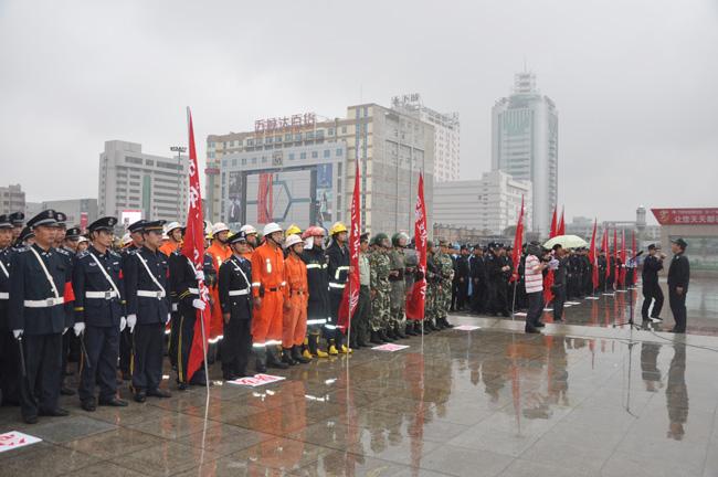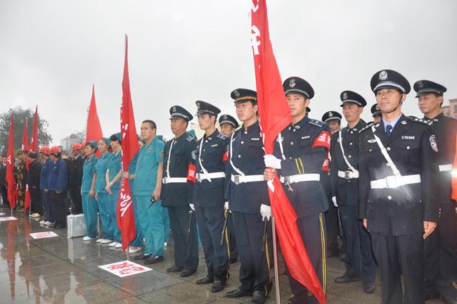 下午4時,保安公司接到市公安局指揮中心集結指令,接到指令后,保安公司總經(jīng)理韓國華立即下達出發(fā)命令,人防經(jīng)理蔣子華帶領保安隊員安排部署后,迅速登車趕往集結地點,在預定時間內(nèi),保安公司全體人員,裝備整齊地到達指令地點。同時,來自公安、武警、消防、水利、氣象、環(huán)保、醫(yī)療等多警種、多部門也及時趕到集結地點。