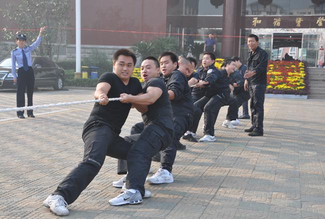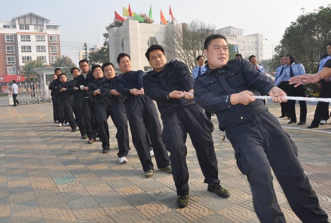 為了慶祝祖國(guó)母親60歲生日,10月1日上午,保安公司派出代表隊(duì)參加市局舉辦的拔河比賽。賽前,公司押運(yùn)經(jīng)理秦平柱對(duì)參賽隊(duì)員進(jìn)行了賽前動(dòng)員,要求大家要以良好的精神狀態(tài)和積極的心態(tài)參加此次比賽。
