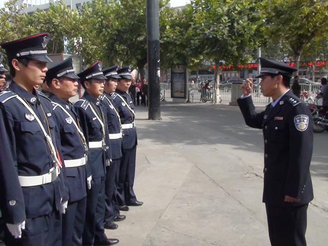 早晨6點,映著晨靄的霞光,全體交通協(xié)警隊員在保安公司院內(nèi)集合完畢,他們著裝整齊,精神抖擻,排著整齊的隊伍來到市區(qū)五一廣場,開始每天的晨訓。他們整齊的步伐、標準的執(zhí)勤動作,贏來了圍觀群眾的一致喝彩。訓練結(jié)束后,人防經(jīng)理蔣子華進行當天的任務安排和部署,對各個中隊進行部署分工,讓大家做到心中有數(shù),統(tǒng)一要求,統(tǒng)一行動。
