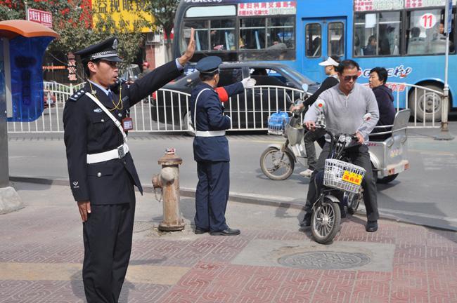 早晨7點,按照部署分工,協(xié)警隊員們兩人一排,邁著整齊的步伐,開始走向各自的執(zhí)勤崗位,主要針對市區(qū)七一路主要路段的交通進行違章糾正,保證道路的順暢、有序。漸漸的,街上的車輛和行人逐漸增多起來,這時候,協(xié)警隊員們就會認真注視著道路上的車輛和行人,嚴格履行自己的職責,一旦發(fā)現(xiàn)有非機動車進入快車道或自行車逆行等違章情況時,他們就會立即做出停止手勢,并且吹響哨音,走到違章群眾身邊,敬禮之后,向他們糾正違章,并解釋和宣傳交通知識,違章者認識到自己的錯誤后,都會及時的改正,得到了群眾的理解和支持后,他們還會說一聲:“謝謝配合?!币?guī)范的執(zhí)勤方式和文明用語,在群眾與協(xié)警隊員之間架起了一座溝通的橋梁。