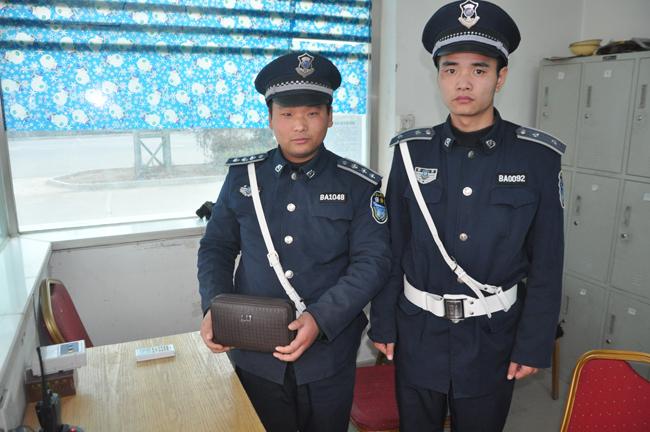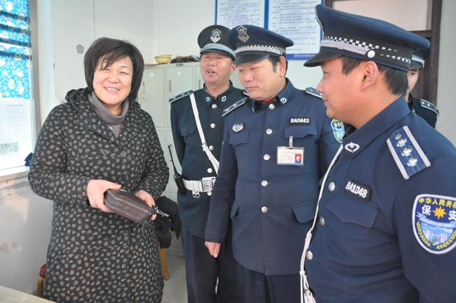 原來,12月28號晚,在越秀酒店執(zhí)勤的保安隊員文帥、呂明明向往常一樣巡邏執(zhí)勤,忽然發(fā)現一個皮包,“就餐的客人都走了,是不是有人落下的”想到這里,保安員文帥及時和大隊長張貝連聯系,并同執(zhí)勤單位保衛(wèi)部門取得聯系,經過共同協商,大家打開皮包,找到了失主的聯系方式,并及時與失主取得聯系。接到保安隊員的電話,在家焦急萬分的失主毛先生長出了一口氣,對執(zhí)勤保安表達了自己的感激之情,并回憶說是自己不慎將皮包落下了,夜晚回到家后,才發(fā)現皮包不見了,由于夜色已經太晚,毛先生請求保安員暫時保管皮包。第二天早上,毛生生的妻子來到越秀酒店保安值班室,向認真負責的保安隊員表達了感謝,并當眾檢查了皮包內的現金、銀行卡、身份證、票據等物品,當看到一切完好無損時,她向保安隊員表達了深深的感激之情,并向保安公司領導和保安大隊長表達了敬意和感謝!