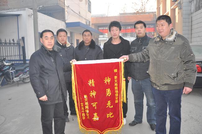 2010年1月16日上午8點(diǎn),保安公司院內(nèi)鞭炮雷鳴、歡聲笑語(yǔ),新天地商場(chǎng)負(fù)責(zé)人和新天地網(wǎng)絡(luò)會(huì)所負(fù)責(zé)人,為公司送來(lái)一面刻有“神勇無(wú)比 精神可嘉”的錦旗,向公司人防三大隊(duì)保安員表示感謝!