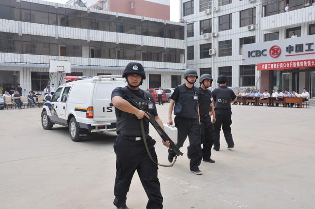 6月4日上午,在周口市工商銀行院內(nèi)舉行,周口市保安服務(wù)公司與中國工商銀行周口分行聯(lián)合舉辦防爆防搶防火災(zāi)應(yīng)急預(yù)案演練。周口市保安服務(wù)公司總經(jīng)理韓國華、押運經(jīng)理秦平柱、中國工商銀行周口分行行長梁光德、副行長信亞彬等領(lǐng)導(dǎo)出席演練現(xiàn)場。周口市銀監(jiān)局、中國銀行周口分行、中國建設(shè)銀行周口分行、中國農(nóng)業(yè)銀行周口分行、周口市商業(yè)銀行等單位人員也親臨現(xiàn)場,觀看了此次應(yīng)急預(yù)案演練。