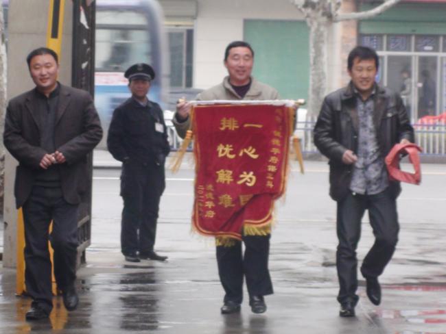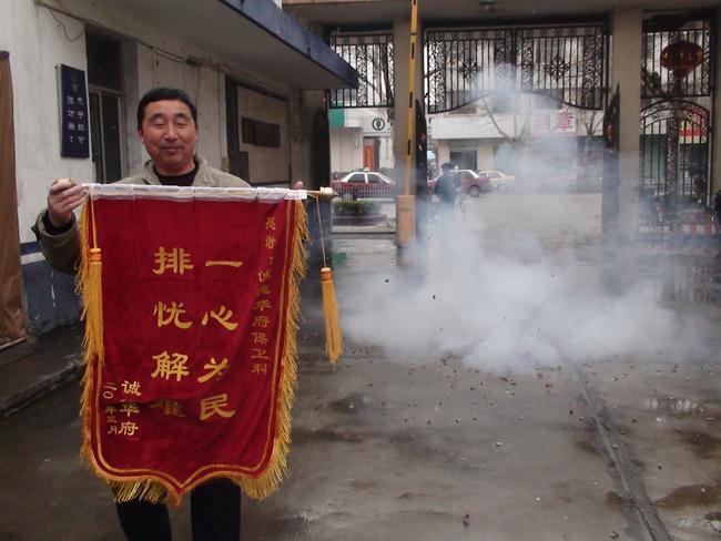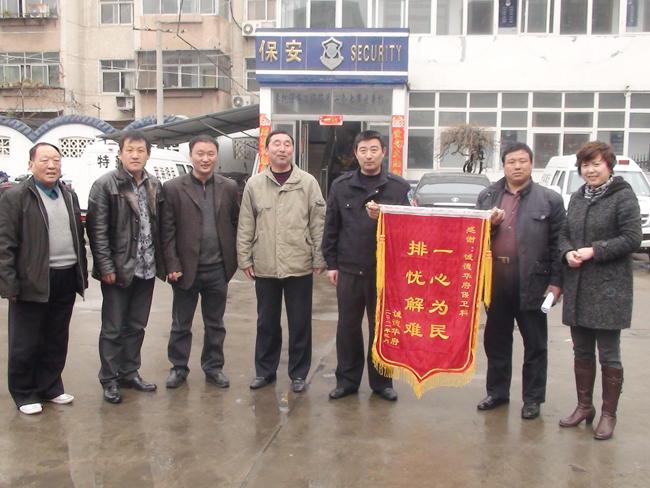 3月21日上午,保安公司院內(nèi)鞭炮雷鳴、歡聲笑語(yǔ),周口誠(chéng)德華府施工工地負(fù)責(zé)人為公司送來(lái)一面錦旗,向公司人防一大隊(duì)保安員表示感謝!
