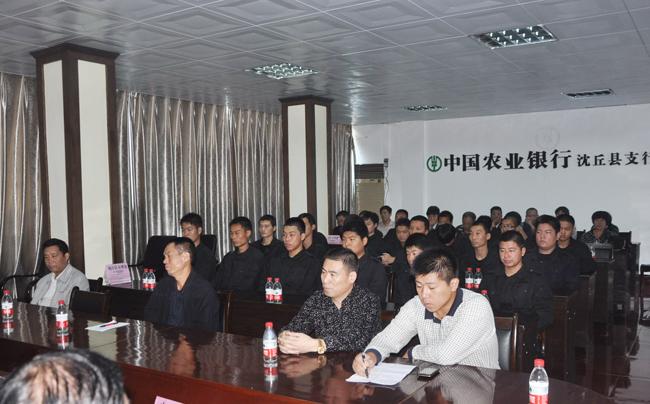 周口市保安服務公司押運經(jīng)理秦平柱、周口市農(nóng)行保衛(wèi)部經(jīng)理王東升、沈丘縣支行黨委副書記白立俊等領導就沈丘縣農(nóng)行社會化守押交接工作進行了溝通交流,并就雙方職責和義務達成一致協(xié)議。