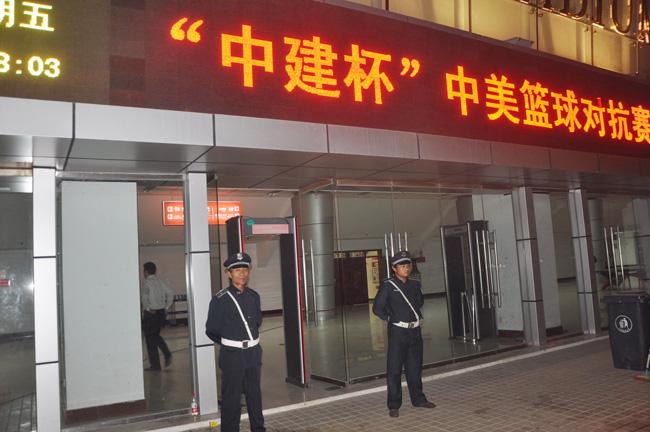 10月21日晚,“中建杯”中美藍球對抗賽在周口市體育館舉行,受主辦方邀請,保安公司接受了此次活動的安保任務,共派出70名保安隊員在活動現場執(zhí)勤巡邏。在整個執(zhí)勤過程中,參與執(zhí)勤的保安人員始終堅守崗位,履行職責,圓滿完成了各項安保任務。