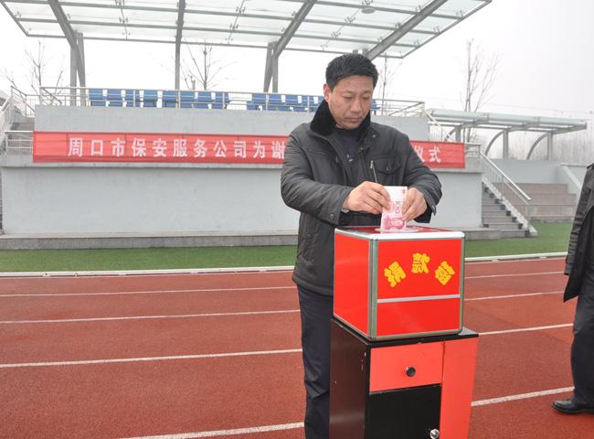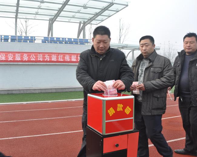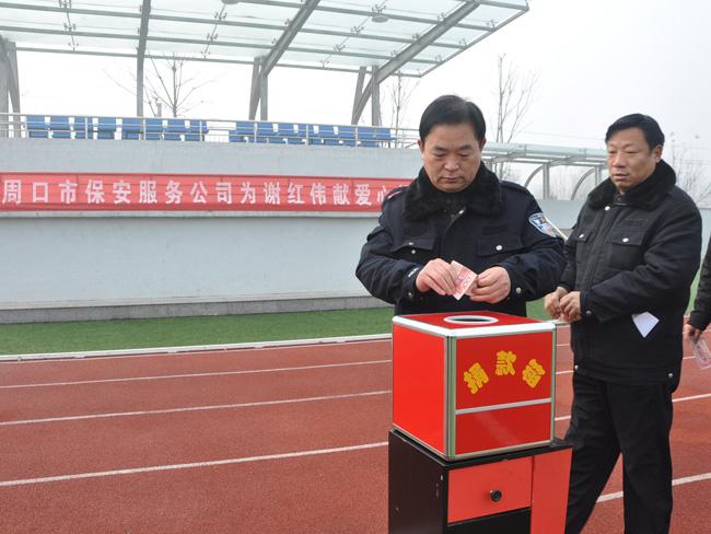 12月3日上午,公司在市局綜合訓練場隆重舉行向保安員謝紅偉捐款活動,公司總經(jīng)理韓國華、公司黨總支書記鄭明山親臨捐款儀式現(xiàn)場,同公司機關(guān)各部門員工及廣大保安隊員一同參加捐款活動。