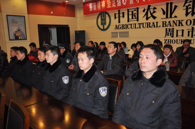 周口農(nóng)業(yè)銀行副行長(zhǎng)張志民代表市分行對(duì)此次金融保安培訓(xùn)班開(kāi)班表示祝賀,并就農(nóng)行“新一屆”領(lǐng)導(dǎo)班子成立后不惜重金,大規(guī)模、全方位對(duì)全行所轄網(wǎng)點(diǎn)保安員進(jìn)行培訓(xùn)的意義目的談了看法,并要求參訓(xùn)保安要提高思想認(rèn)識(shí),充分認(rèn)清加強(qiáng)金融安全保衛(wèi)工作的重要性,創(chuàng)造良好的金融安全環(huán)境,他還勉勵(lì)所有參訓(xùn)保安隊(duì)員通過(guò)此次嚴(yán)格正規(guī)的培訓(xùn),更加遵章守法,把學(xué)到的知識(shí)運(yùn)用到日常工作中,最后,他預(yù)祝與保安公司合作愉快、順利、成功、!