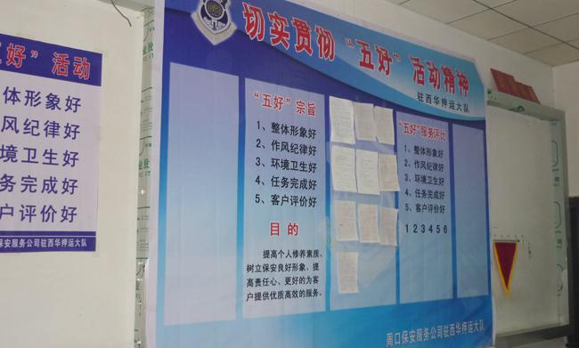為切實貫徹公司“五好”活動精神。西華押運大隊以“一心為公司,一切為公司”為目的,利用墻體板報,掛橫幅進行宣傳,并開展組織學習、討論評比等活動,確?!拔搴谩被顒佑杏媱?、有步驟、有目的開展進行。