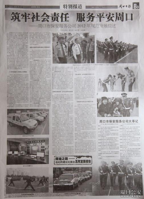 《周口日報》專版刊發(fā)保安公司特別報道《筑牢社會責任 服務平安周口》