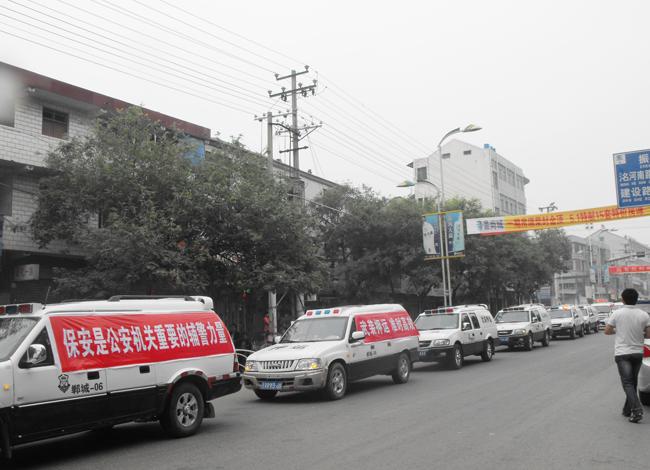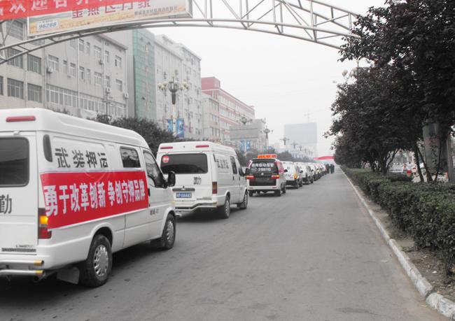 儀式結(jié)束后,鄲城押運(yùn)大隊(duì)組織押運(yùn)隊(duì)員和押運(yùn)車輛圍繞中心城區(qū)進(jìn)行宣傳活動(dòng),并且進(jìn)行了押運(yùn)隊(duì)員分列式和擒敵拳表演,押運(yùn)隊(duì)員過(guò)硬的技能和嫻熟的業(yè)務(wù)贏得了現(xiàn)場(chǎng)人員的贊許和認(rèn)可。