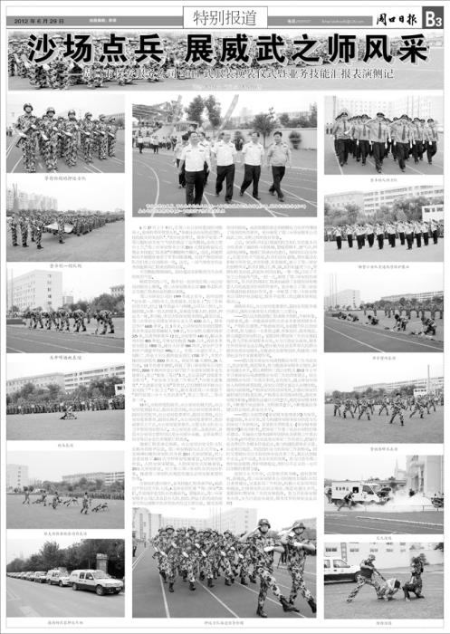 6月27日上午9時,在周口市公安局寬闊的訓練場上,蔥綠的草坪更顯生機。“爭做社會治安的巡邏隊,搶險救災的突擊隊”、“筑牢社會責任,服務平安周口”等巨幅標語在充氣氣球的載送下迎風飄揚,會場主席臺上方,“周口市保安服務公司2011式服裝換裝儀式暨業(yè)務技能匯報表演”的橫幅格外醒目。遠處,場地兩側有序地擺放著若干軍事訓練器械,儀容嚴整的保安隊員們肅立在訓練場一旁。這里,一場氣勢恢宏的業(yè)務技能練兵匯報演出即將啟幕。