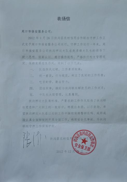 沈丘縣農(nóng)村信用社社會(huì)化守押工作交…