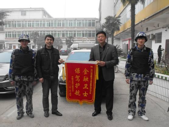圖為是鄲城農(nóng)行副行長路行長和鄲城押運大隊副大隊長郭益?zhèn)ネ玖粲?/FONT>