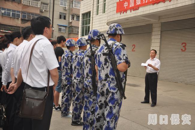 為確保金融押運(yùn)安全,提高銀行防火防災(zāi)能力,確保金融安全防范風(fēng)險(xiǎn)的能力,2013年6月6日下午18時(shí),在中國(guó)銀行院內(nèi),周口市保安服務(wù)公司與中國(guó)銀行聯(lián)合組織了一場(chǎng)押運(yùn)安全應(yīng)急預(yù)案演練。中國(guó)銀行王書記、保衛(wèi)部李經(jīng)理、建行保衛(wèi)部高經(jīng)理、各分行行長(zhǎng)及保衛(wèi)部經(jīng)理,周口市保安服務(wù)公司押運(yùn)經(jīng)理秦平柱、副經(jīng)理郭偉、辦公室主任耿學(xué)爭(zhēng)參與了整個(gè)演練過程。